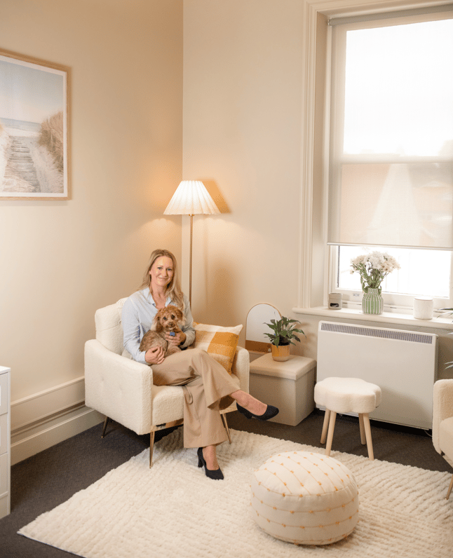 Compassionate, evidence-based counselling tailored to you — with the option of sessions alongside therapy dog Dobby.